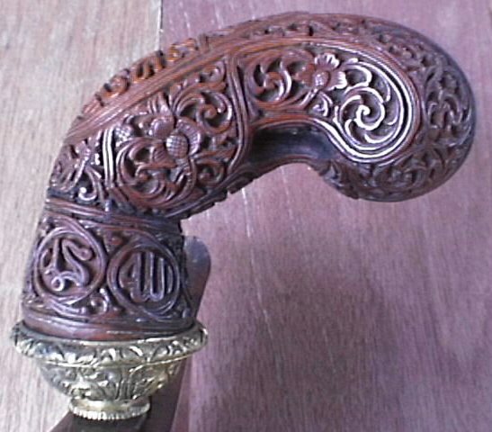 Pasando aos elementos que compoñen estas pezas o primeiro a notar é a empuñadura (hulut), habitualmente de madeira tallada ou de óso. As formas que adoptan son moi variadas: en Bali é típico que sexan figuras antropormorfas, representando deuses e diaños do panteón hindú; nas zonas musulmanas (Xava, Sumatra), a proibición coránica das imaxes fai que as representacións tornen abstractas, apenas recoñecibles xa como paxaros ou homes, e que predominen as volutas e decoracións florais; na illa de Célebes é típico entre os bugis un mango moi curvado en forma de pistola; en Malasia, é habitual o mango pekaka (literalmente, 'picapeixe', anque en realidade o seu pico curvado no remate non estexa inpirado no paxaro, senón que sería unha forma estilizada do antergo deus Shiva).